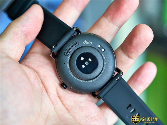 翻看Y60的背面,中央部分是突起的传感器,内部集成整合了VP60A+VC9201心率血氧传感器、STK8321三轴线性加速度传感器等,能够测血糖、血氧、血压和心率,功能丰富超过苹果表,还能自动识别摘下状态停止监测节省电量。