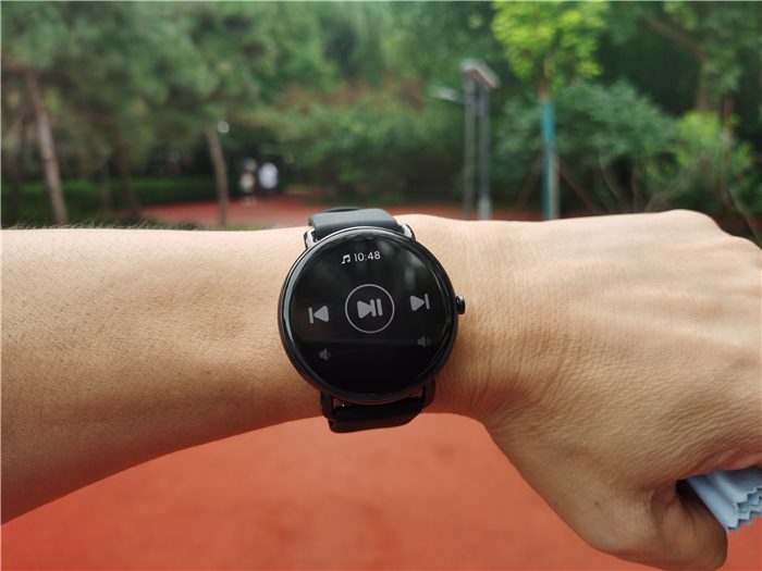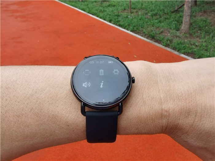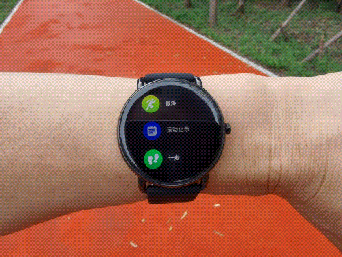手表佩戴后不仅外观简洁大方,也感觉十分轻巧和舒服,没有负重感。纯黑的背景让显示十分醒目,犹如墨水屏一般,即使在阳光充足的室外依然清晰可见。触控操作也十分顺滑灵敏,确实不错,只是光滑的表镜上容易留下指纹汗渍,贴一个磨砂膜应该会好些。