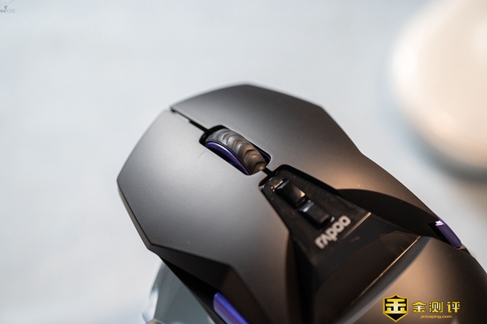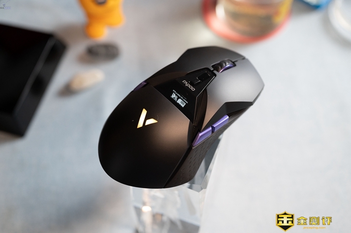 这款鼠标的背部掌托比较高,长时间使用也不累,适合各种常见的握姿,基本都能用得很舒服。而且这款鼠标重量也很轻,只有117g左右,移动操控十分顺滑。从上面看,它比别的鼠标更加帅气一些。