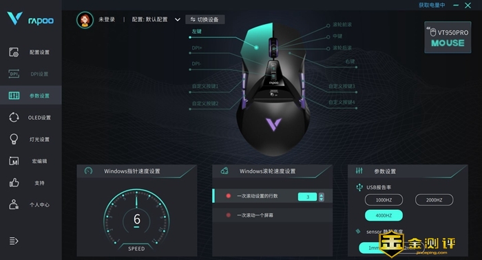 使用这个功能需要在雷柏的驱动软件中,将V2M和VT950Pro配对,配对的操作非常简单,按照驱动软件的说明,不到一分钟就可以搞定,之后在驱动软件上开启4KHz,就可以获得4KHz的操作响应了。