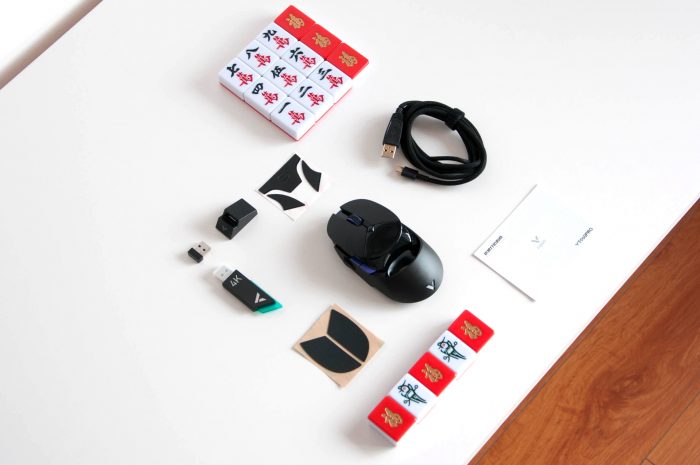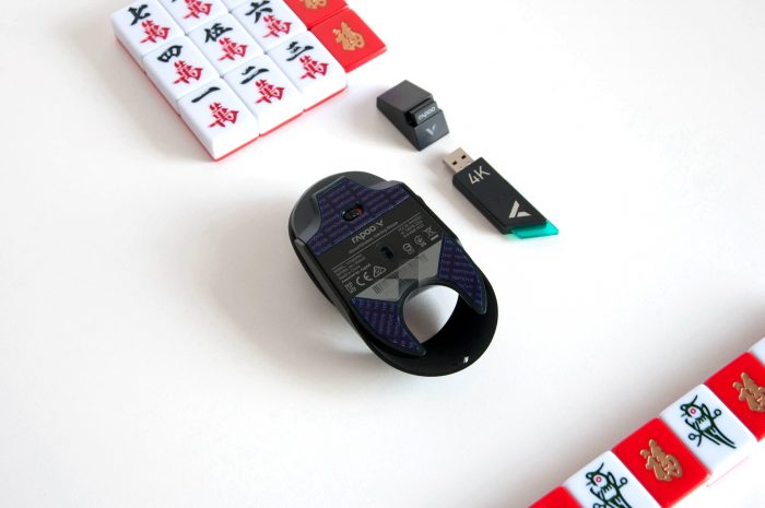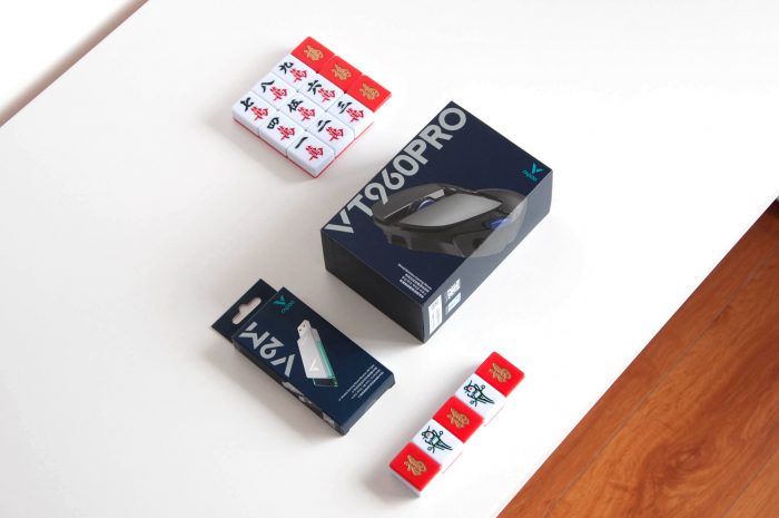 这次体验还有雷柏V2M无线游戏鼠标4K接收器,哈哈。包装方面,这两款产品都延续了雷柏一贯的深蓝色礼盒设计,盒子表面都印着产品图案、型号和卖点等信息,辨识度蛮高的。全家福:雷柏VT960PRO屏显双模无线游戏鼠标一只,1.8M伞绳充电数据线一根,USB转换器一个,USB接收器一个,按键防滑贴一张,备用更换脚贴一张,4K接收器一个和快速指南一份。