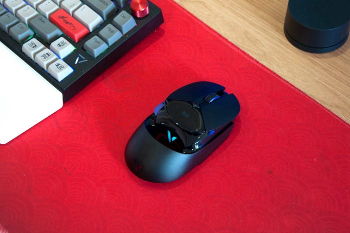 按键方面,雷柏VT960PRO屏显双模无线游戏鼠标除了正面的4个按键和中键刻度滚轮外,还在左侧配置有三个侧键,这些按键均可通过驱动程序进行编程设置,对于游戏玩家来说非常友好。