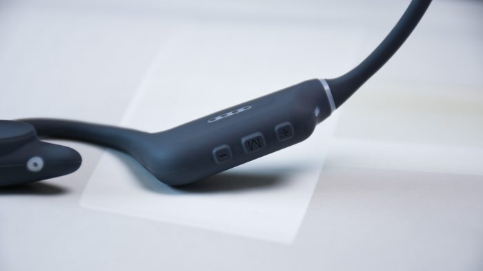 骨传导模块和之前一样,以圆形为主,朝后方有一段小尖尖延伸出来,不仅可以增加美观性还能提升佩戴稳固性。