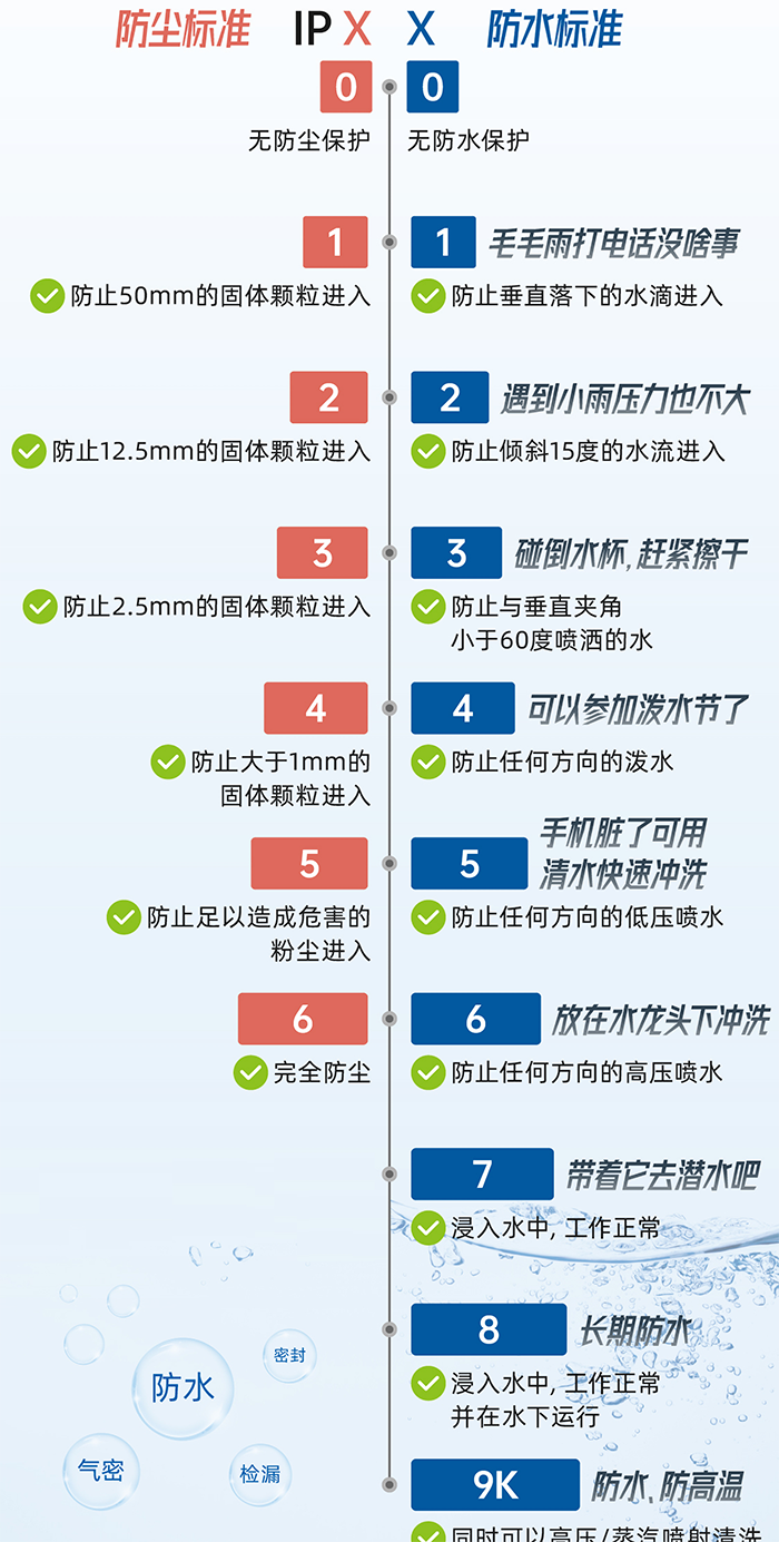IP68,第一个数字是防尘等级,第二个数字是防水等级,根据表中信息可以看得出来,南卡Runner Pro 4S骨传导耳机完全防尘,并且支持长期防水,可以在浸入水中的情况下正常工作。