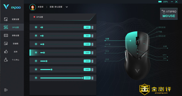 在设置界面可以DPI调节,共7个档位可以调节,支持7键可编程,为用户提供了多种选择。