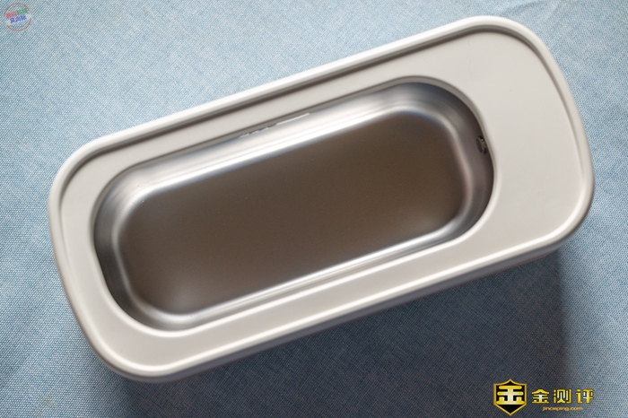 取下机器的顶盖,可以看到它内部空间非常大,容量有420ml左右,眼镜、手表、首饰等物品大多可以完整浸泡在里面。作为需要沾水使用的设备,防锈自然很重要,它内侧采用了食品级304不锈钢材质,使用寿命大大提升,使用时只需注意添加纯净水源就可以了。