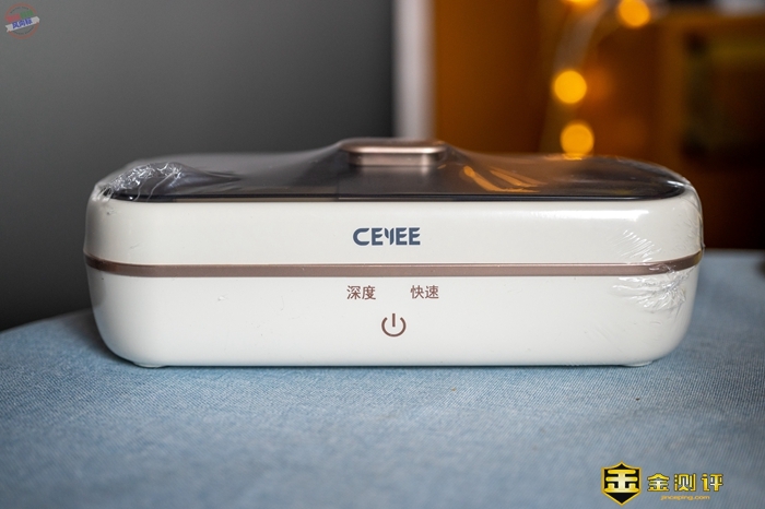 这款超声波清洗机的设计很简约,是长方体的,内部有足够的空间,放眼镜完全没问题。在边缘部分是曲面设计,细节做得不错,没有什么瑕疵。机身正面是希亦的LOGO,控制操作的位置在机身下方,包含开关机、深度和快速清洁,用的是触摸按键设计,非常方便。