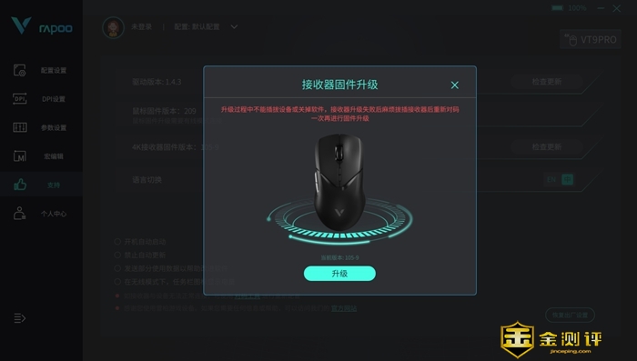 当然,这种调节既可以使用实体按键,也可以通过驱动端直接操作,同时,驱动端支持接收器固件升级和V2M接收器对码等操作,如果你是普通玩家,那么1K接收器足够应对了,如果你对精度要求很高,还是推荐使用4K接收器,体验感直接起飞。