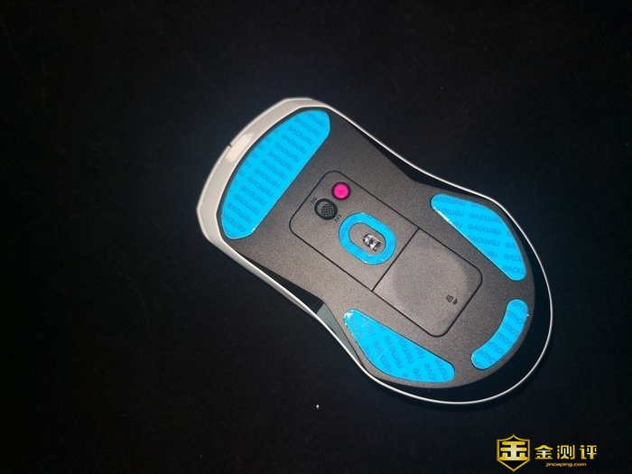 雷柏VT9 PRO鼠标底部四角分别放置了特氟龙材质脚贴,上方放置了拨动开关,中间位置为传感器。 最为特别的地方是在底部设计了隐藏型磁吸收纳与无线充电模块扩展仓,可以与选配件充电模块,实现无线充电。