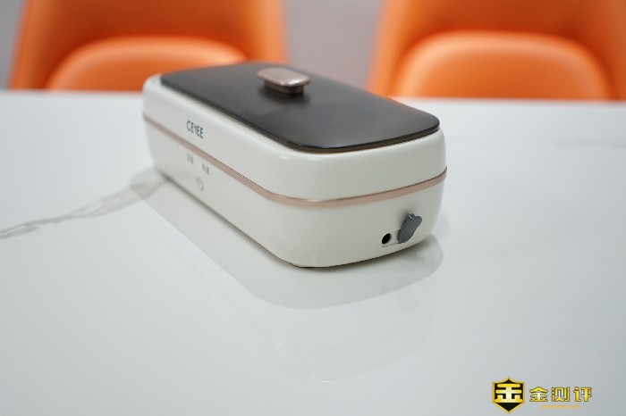 希亦CG声波清洗机尺寸为220mm*120mm*70mm,重量363.7g,整体设计非常圆滑。清洗机做工很精致,正面印有logo,机身四周圆滑非常方便收纳,小巧的体积携带也非常方便。