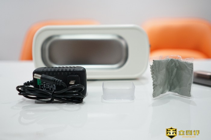 打开包装盒可以看到所有物品如下:希亦CG声波清洗机、电源线、垫高块、眼镜布和说明书。