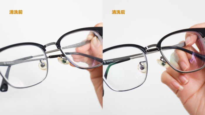 来对比一下清洁前后的效果,除了镜片明亮许多之外,缝隙处的污渍也清理出去不少,清洁效果还是很不错的。