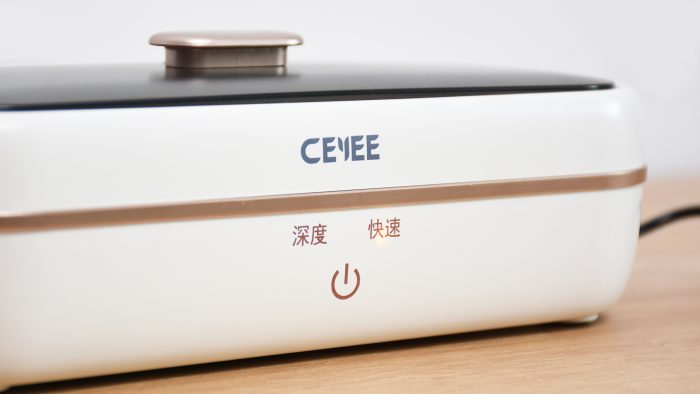 机身正面中间是交互区域,腰线上方标注有希亦的LOGO,下方分别是深度模式、快速模式和电源按键,三颗按键均为触控按键。