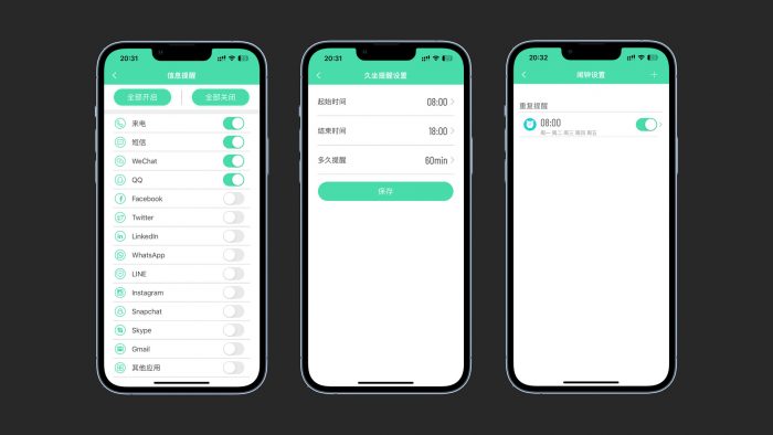 另外,还可以在APP中打开手机消息推送,支持电话、短信、微信、QQ等等,当手机上有以上软件的消息提醒,就会推送到手表上,避免错过重要信息,对于上班族来说尤其实用。
