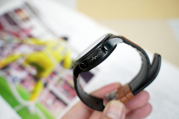 表框右侧设有三颗实体按键,分别为两个功能键及一个用于ECG心电数据采集的电极键。