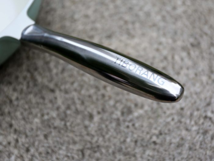 附赠的锅铲整体采用了食品级的硅胶材质,安全无毒耐热性好,顶部印有品牌的英文LOGO看上去非常时尚,铲子整体轻巧和短小,使用起来不但顺手,这个长度进洗碗机也方便。