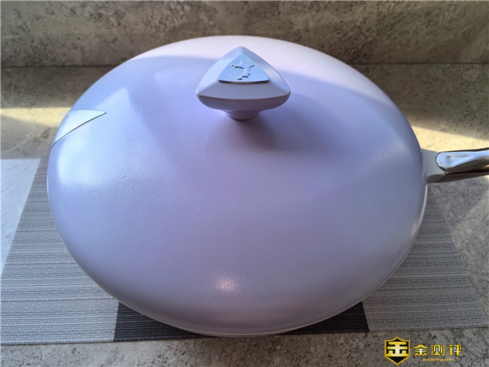 三角形的盖珠有点别致,通过螺纹与锅盖连接。相对于通过螺丝钉连接方式,不容易松动,在保证锅盖一体性的同时,也不容易藏纳细菌。