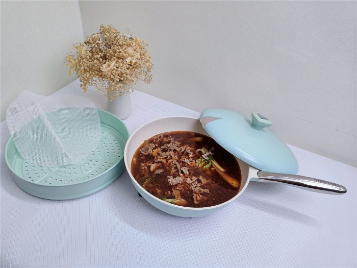 一锅多用,也是『帝伯朗零氟系列——氧吧锅』的特色,大口径大容量配合蒸笼,聚合了:炒锅、煮锅、煲汤锅、蒸笼甚至还能用来吃火锅。同时又能兼容电磁炉、燃气炉、瓦斯炉、电陶炉、电热炉使用,以后无需添置太多锅类,还厨房一个宽阔的空间,另外使用起来也不会杂乱。