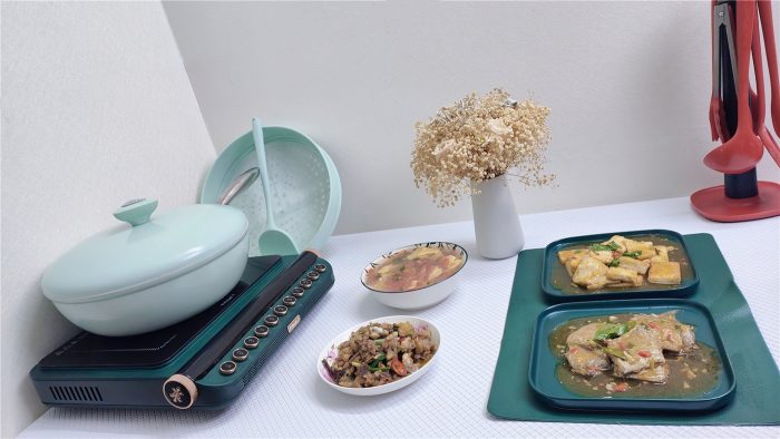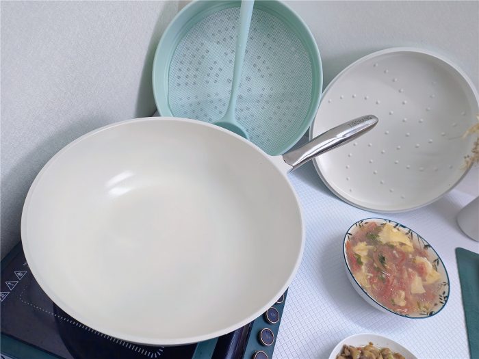 针对以上所知所引,我个人做了一些食物烹饪测试,油煎炸是测试不沾锅最好的方法,我分别用煎豆腐、煎鱼、煎鸡蛋进行体验,其瓷釉内壁的瓷悬浮技术所带来的不沾性能确实出色非凡,完全没有食物粘附锅上,特别完美。