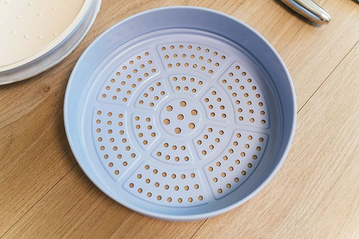蒸屉用起来也非常方便,硅胶材质的屉布也完全不会黏住食物,清洁起来也非常简单。