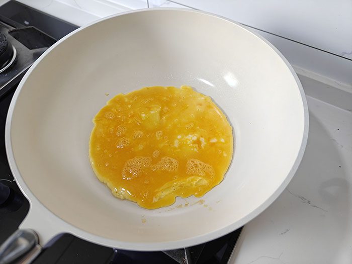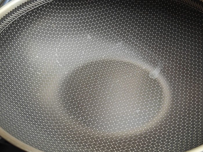 接下来即使实际测试了,炒鸡蛋用于测试不粘锅的一个简单实用的方法,在高温下,鸡蛋液很容易就粘在锅底,甚至糊锅。帝伯朗这款氧吧锅不仅不会粘锅,也不容易糊锅,就算使用硅胶铲也可以轻松翻炒,这点非常不错,相比家里之前的那个炒锅真的强太多了。既然炒鸡蛋都可以非常完美,甚至不用放油,那其他的煎炒烹炸也都不在话下了。