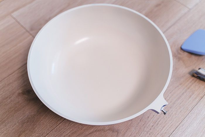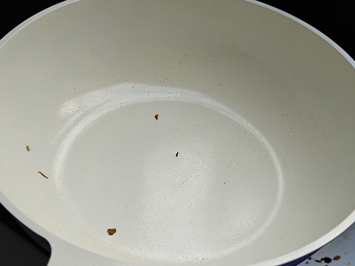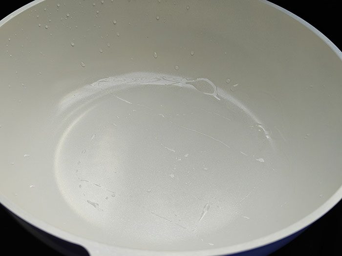 炒菜后的清洁也非常简单,因为锅内的不粘涂层炒完菜后,几乎不会残留什么,菜汤也只会以水滴的状态留在内壁,直接用清水就能清洗干净,如果遇到顽固残渣,也只需使用清洁布擦洗就可以了。