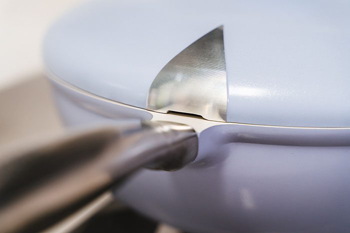 但是我没在锅盖上看到出气口,直到我将锅盖盖上,才发现,锅盖的侧面,就是有金属标的那一侧有一个小小的开口,出气口设计在这里确实非常巧妙,既保证了锅盖外观的整体美观,还兼具了实用性,不得不说设计师下了不少功夫。