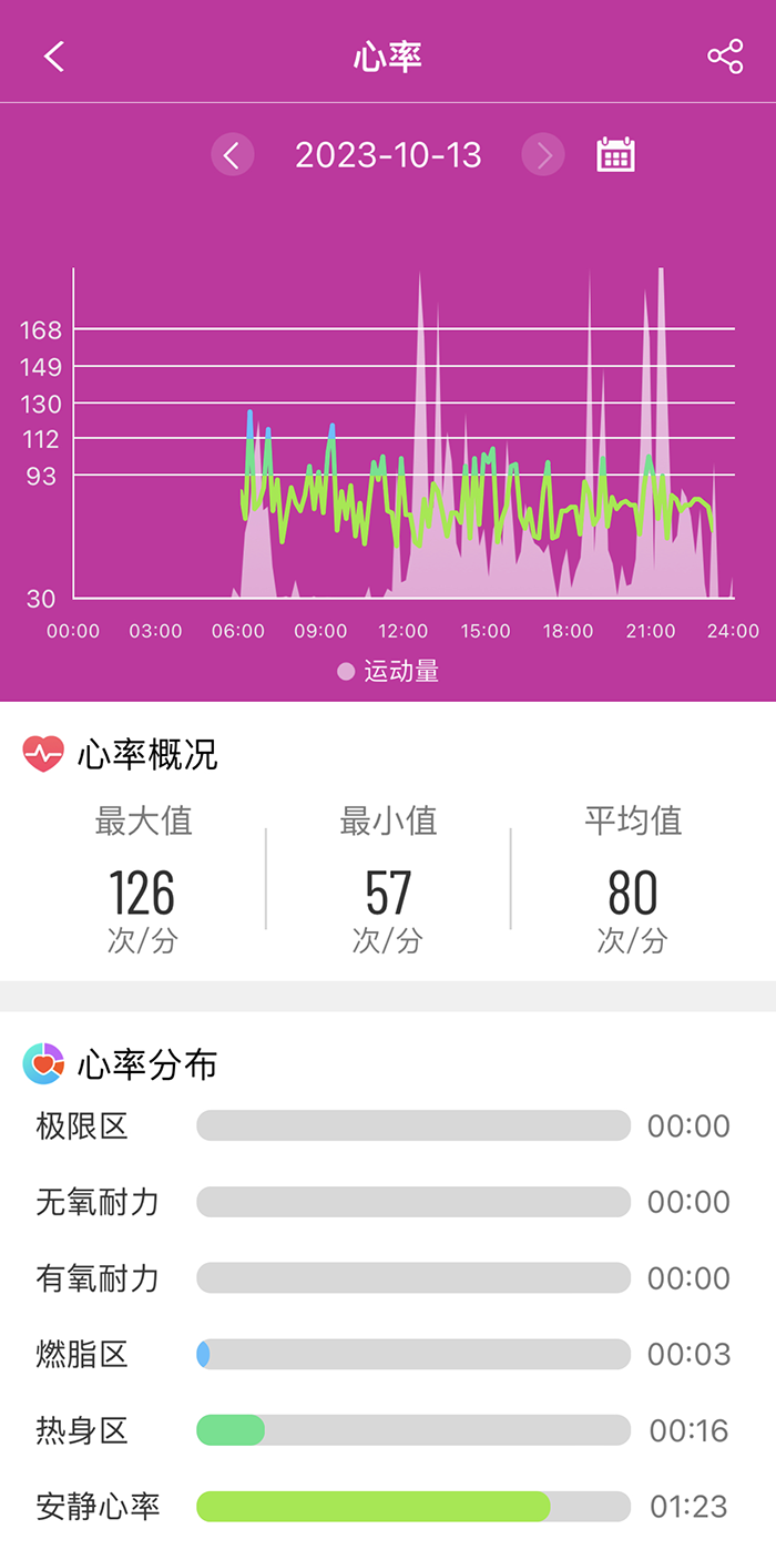心率是人体的一个最基础的数据,特别是针对运动状态下的心率,和减脂等目标是有对应的,不同的心率区间可以实现不同的运动效果。dido E55SPRO的心率检测同样也实现了24小时全天候,并且在数据统计阶段给出了不同心率区间的时间,能够帮助用户进一步明确自己的运动状态。