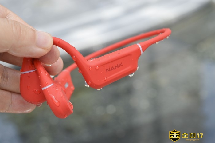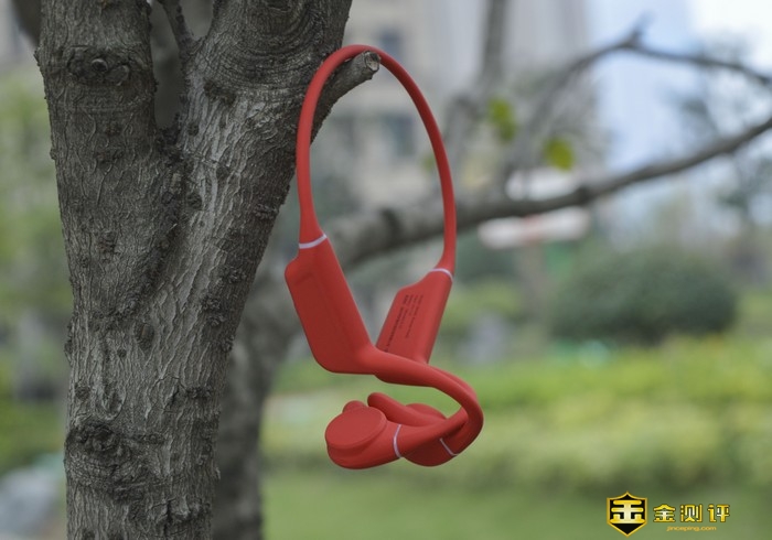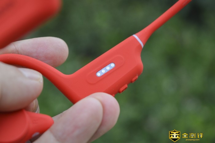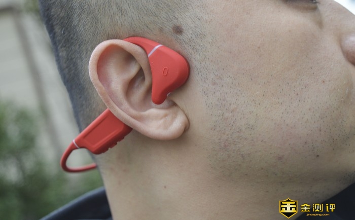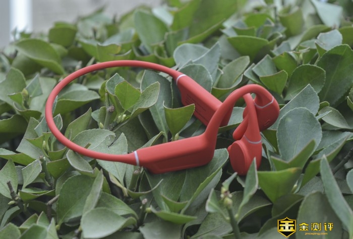 红色机身覆裹了一层医疗级亲肤硅胶,既保证了佩戴的舒适性,又能在运动跑跳状态下保持紧贴状态,并且此次的贴肤扬声器部位面积和外形有些许增大优化透气性和柔软度以及低敏等表现也相当优异,佩戴的贴合感及舒适性上都有了一定的提升,并减轻了骨传导耳机普遍存在的漏音问题。并且耐污防尘性能十分优秀搭配IPX8级防水可以日常使用水冲清洁。