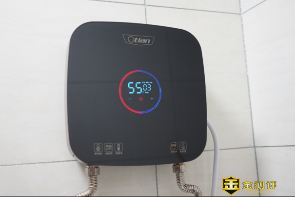 机身的正面布置了一块LED的显示屏,触控式的显示屏用户可以方便温度设定操作,显示屏可以实时显示设定温度以及出水温度。