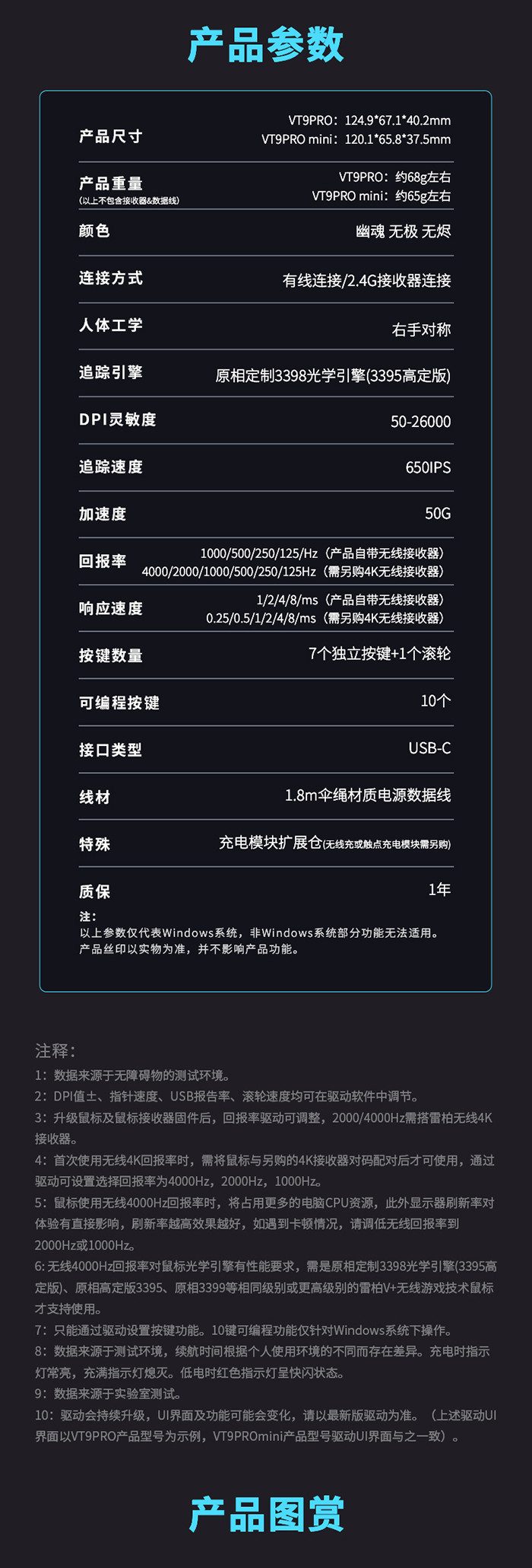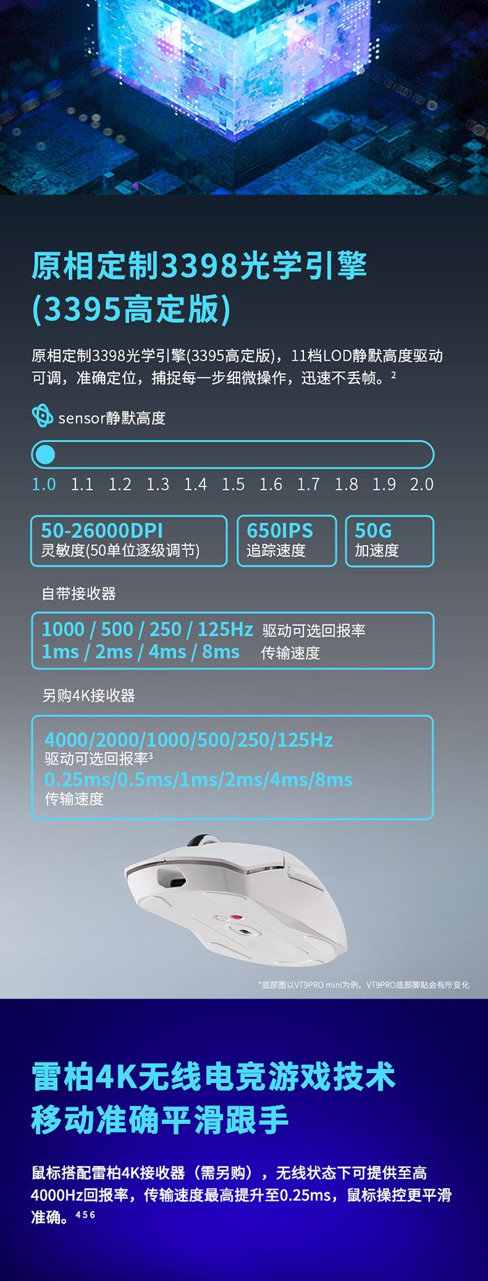 雷柏VT9PRO/VT9PRO mini双模4K无线游戏鼠标套装 5套 注意:每人一套评测产品