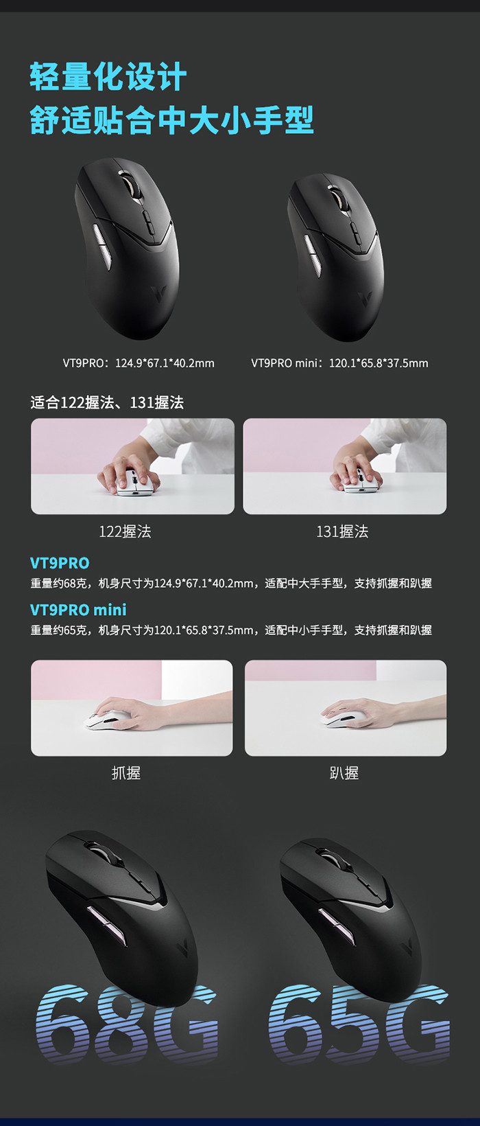 雷柏VT9PRO/VT9PRO mini双模4K无线游戏鼠标怎么样呢?一起来看看实际的使用体验:【金测评】雷柏VT9 PRO系列开箱:黑科技快人一步,这才是我要的中大/中小手游戏鼠标【金测评】多彩轻量化、大中小手都适用,雷柏VT9PRO/PRO mini双模无线游戏鼠标【金测评】雷柏VT9PRO组合,满足中大小手的游戏需求【金测评】要大有大,要小有小,雷柏这个鼠标套装可以满足所有人的需求【金测评】雷柏VT9PRO:轻量化全能型手感双模无线电竞游戏鼠标首选