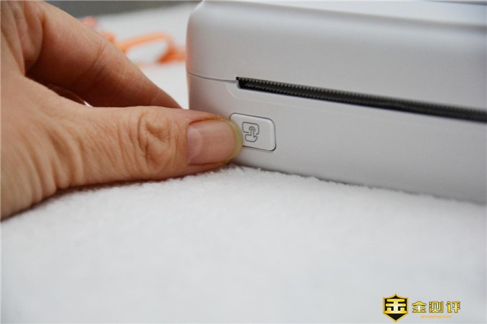 机身正前面便是出纸口,自带细密切割锯齿,打印之后撕纸整齐不费劲。在出纸口的下方,左右两边有对称的按钮,轻轻一按盖板就被打开了。