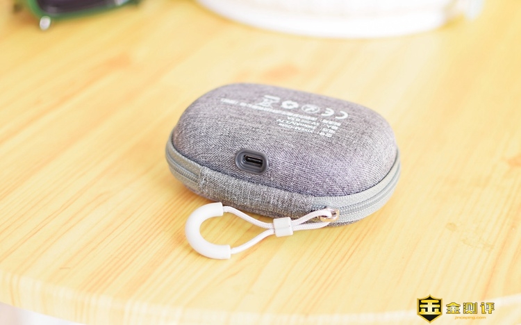 原本我以为这个耳机盒会是一个装饰性的包装盒,真没想到它居然就是耳机的充电仓,上面有一只小吊环可以方便取挂,后侧是一枚Type-C的充电口。