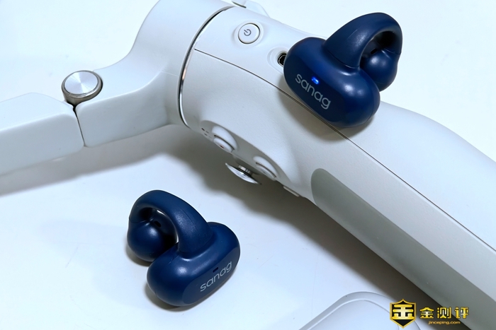 耳机采用第三代360°全景音气传导方式,无需入耳即可发声,这样的设计能有效避免因长时间堵塞耳道所导致的耳膜炎等疾病,而相比骨传导来说,气传导的方式基本没有酥麻感,声音也更接近传统的蓝牙耳机。