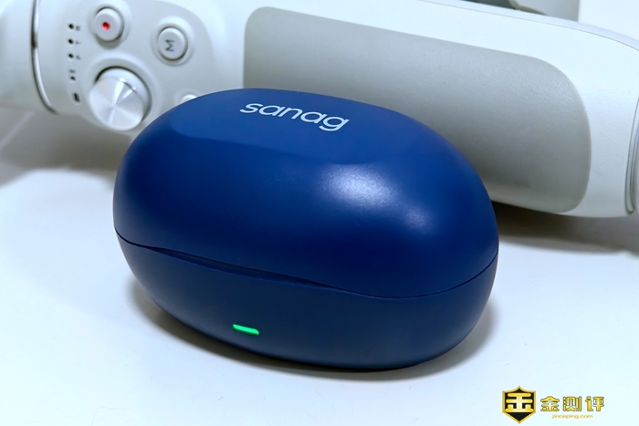 耳机充电仓采用鹅卵石造型设计,整体圆润,顶部印有品牌logo,前方为状态指示灯。这款耳机拥有飞花粉、地藏蓝、银河黑、象玉白四种颜色供大家选择,我入手的是地藏蓝配色,整体非常耐看。