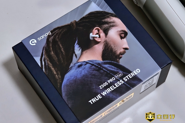 sanag塞那是一家科技智能穿戴音频品牌,源自英国,充满了英伦的时尚感和创造力元素。塞那Z50S Pro外包装简洁,正面为耳机的实际佩戴场景展示,背面则介绍了耳机的详细参数。