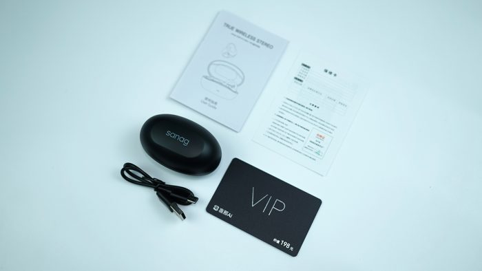塞那Z50S Pro Max耳挂式蓝牙耳机还提供了一根充电线、一张品牌VIP卡片,一本使用说明书,一张保修卡。