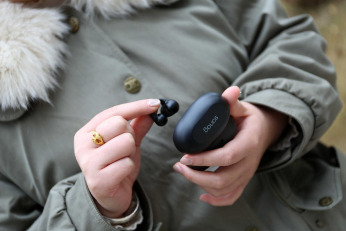 既然可以当成耳饰来进行佩戴,那么在颜色上sanag塞那也为这款耳机也提供了黑、白、蓝、粉四种配色可以选择,笔者这里选择了比较稳重的黑色,不管是上下班通勤还是运动健身都非常合适。
