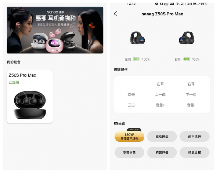 除了硬件上带来的音质提升以外,sanag塞那还专门为旗下的所有耳机开发了一款“塞那大师”的音效APP,通过和手机连接成功之后,在这款APP内,就可以一键设置大师级耳机EQ,让声音也可以DIY,可玩性更高。