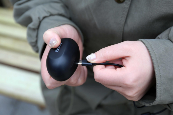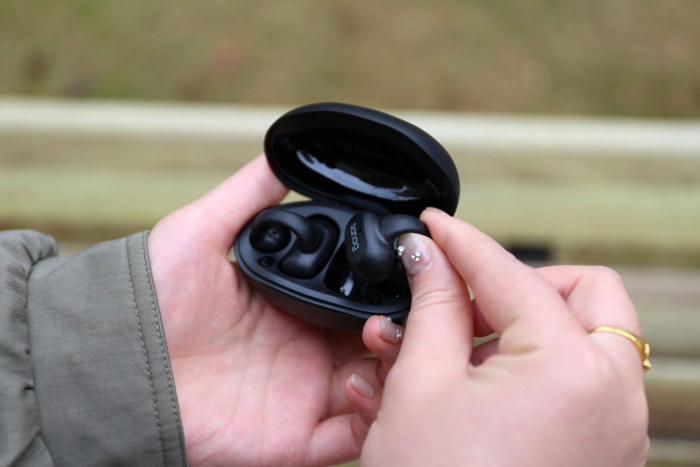 或许是因为佩戴方式的不同,这款耳机的充电仓也相较于普通的入耳式耳机要大一些,喜欢把东西装进裤兜的朋友可能会有些小失望,出门携带搭配一个包包会更方便一些,如果是冬天的话,放在外套、大衣的口袋也是不错的选择。