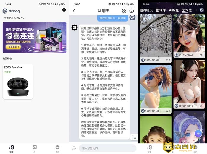值得一提的是,此次入手的耳机还配送了一张塞娜AI的VIP卡。这卡可是价值198哟。这卡有啥功能呢?我用了一下,真的太好玩了。首先要下载塞娜APP。然后这个APP不仅可以连接耳机,调整耳机的各种功能和状态显示,更是有个强大的AI功能。