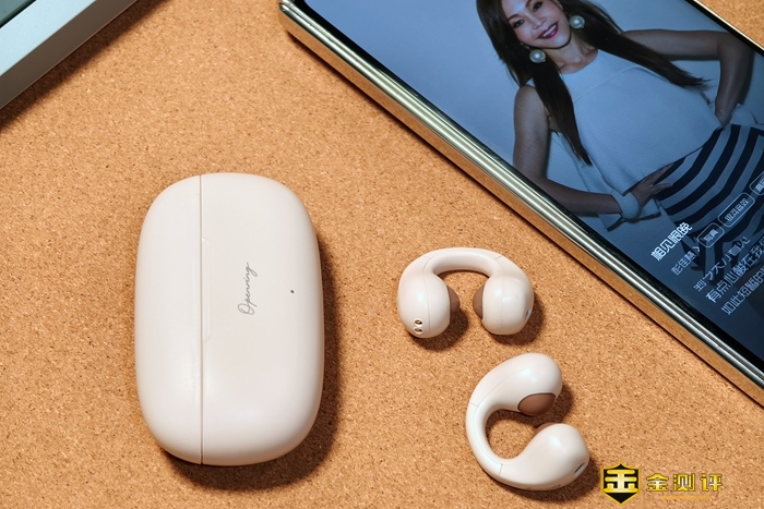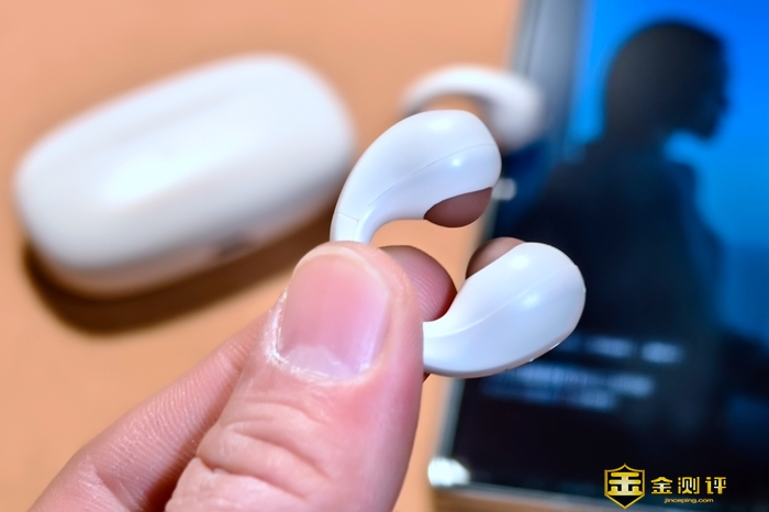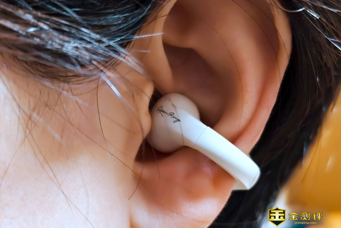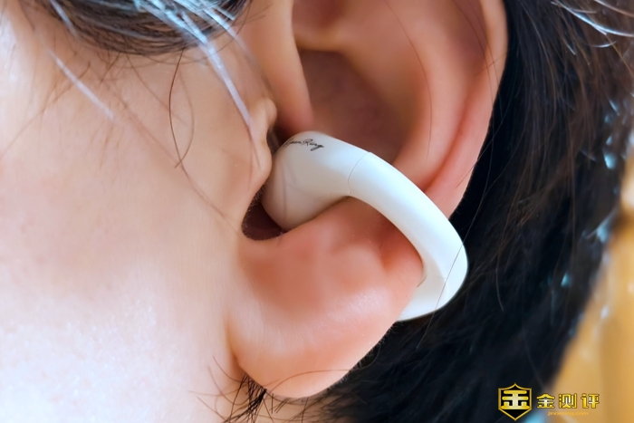 耳机采用了零度液态硅胶气囊设计,拥有更好的回弹性能,在不入耳的前提下,能够自适应大小耳、薄厚耳,佩戴舒适稳固,不像其他开放式耳机那样靠蛮力夹着耳朵,长时间佩戴也不会卡的耳朵疼。