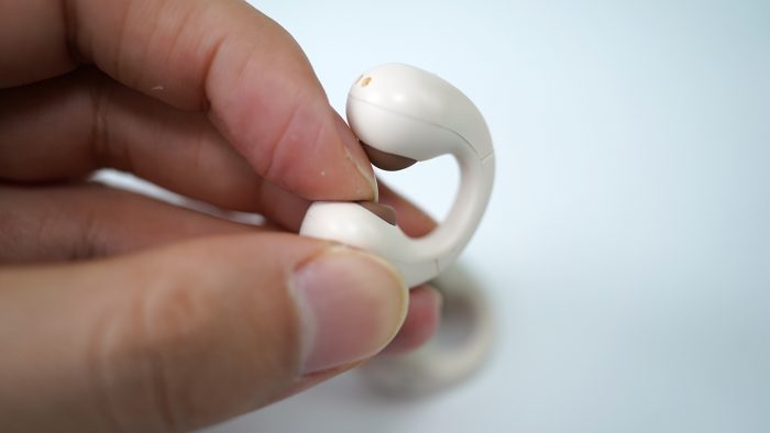 要说冇心Open Ring开放式蓝牙耳机,就仅仅是Opening一个内涵吗?实际不然,这款耳机从充电仓到耳机本体都是非常小巧的风格,小巧并不是耳机的本意,重在实现轻量化,以减轻耳机对耳朵的压力影响。除此之外,冇心Open Ring开放式蓝牙耳机在于耳朵接触处,材质升级为了零度液态硅胶气囊,也就是耳机的棕色部分,这一部分的材质较软,能够更好的与耳朵进行贴合,降低压力的同时又能够实现佩戴的稳固性,从而可以适用于各种不同尺寸不同形状的耳型。