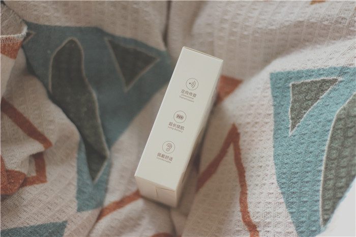 在没有打开包装盒之前,我们就可以从正面发现这款开放式蓝牙耳机的不同之处,除了款式为:耳夹式以外,在贴近耳朵两侧为液态气囊设计,(这可是冇心自由品牌设计专利,哦。)
