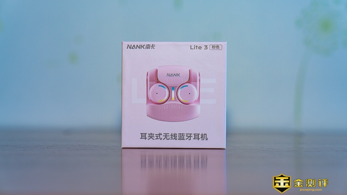包装方面,仍然延续了南卡一贯的简约风格。正面为耳机及充电仓的产品渲染图,上方为南卡的品牌LOGO标识以及型号,下方则是耳机的名称,此次我们拿到的是粉色的版本。