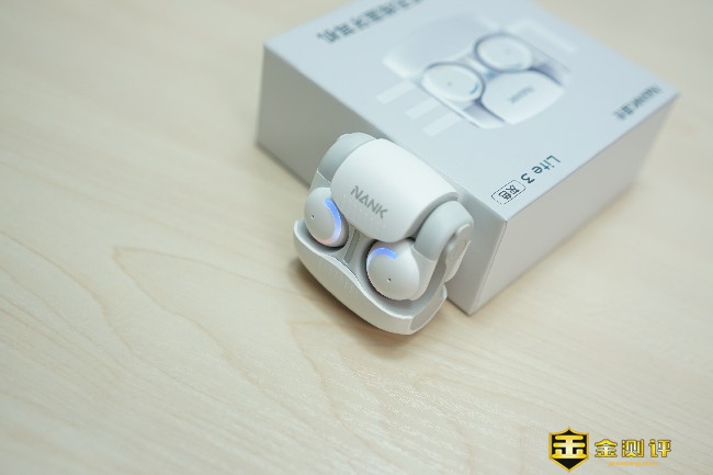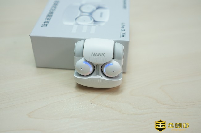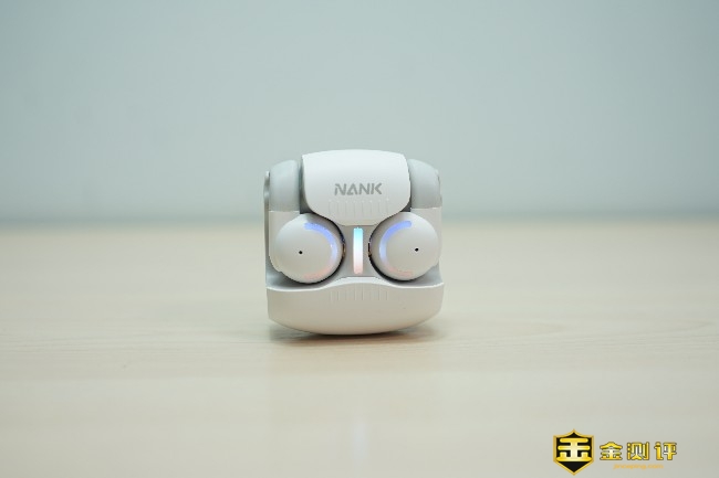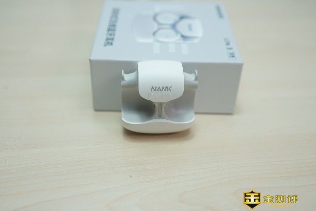 白色的耳机搭配白色的收纳仓显得非常干净简洁,单元外壳处印有NANK字样,光滑的表面有足够的防污能力,整个设计非常不错。
