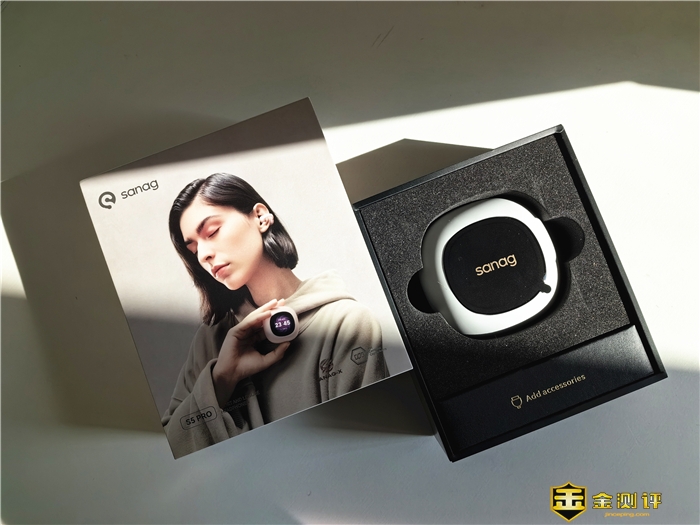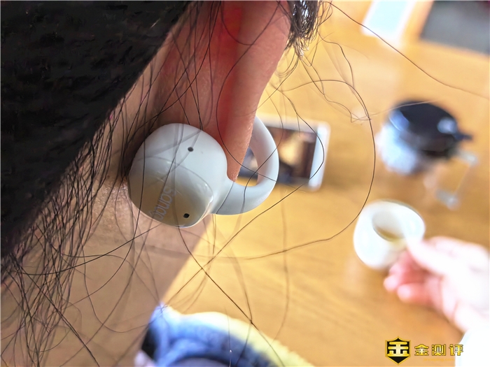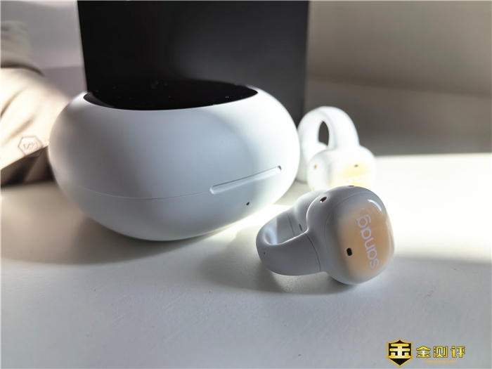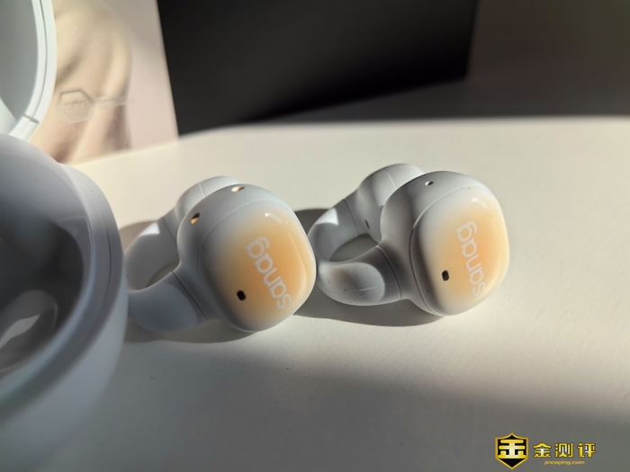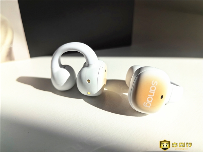 sanag S5 Pro耳机外形,采用夹耳式的造型,小巧轻盈,环形设计,可以360°贴合耳廓,让耳机在耳廓上均匀受力,佩戴24H毫无压力即使久戴也不会觉得累。