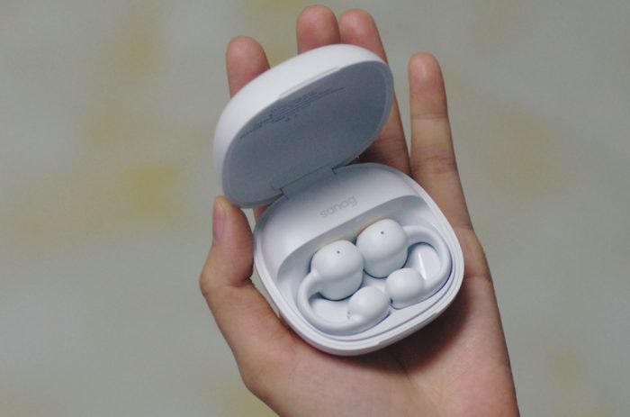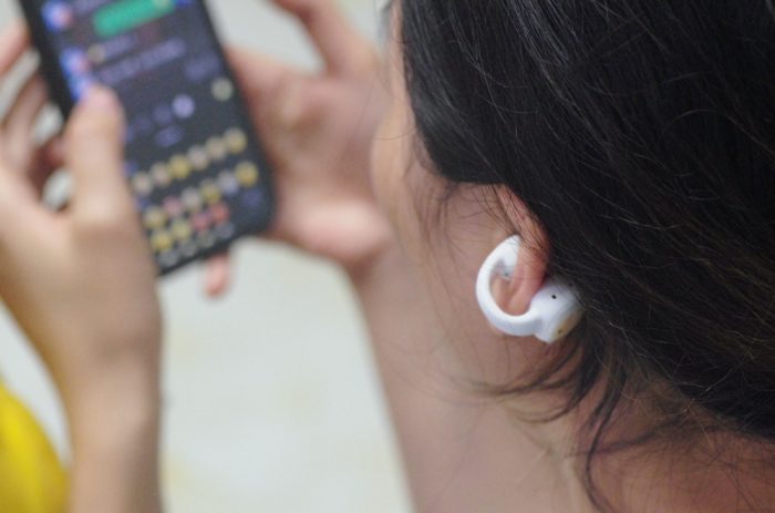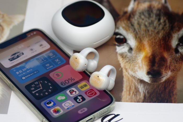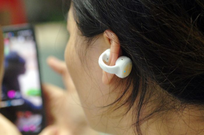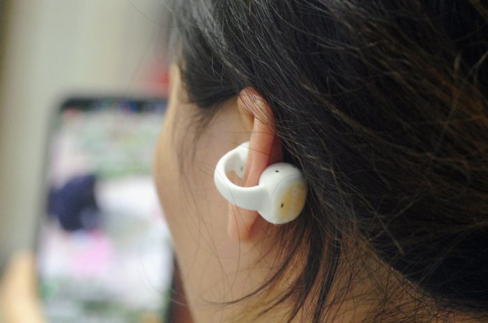 耳机本尊机身很轻,拿到手里几乎无感。耳夹式佩戴方式,相比直接入耳的传统耳机,不会对耳道造成损伤,而且不影响接受外界环境音,户外使用更为安全。夹耳音腔部位回弹性非常好,适合各种耳廓,戴上很舒服,对耳朵不会产生压迫感,而且非常的稳固,长时间佩戴也不会有任何不适,云感亲肤。更可人的是,它小巧艺术的身姿佩戴夹在耳朵上犹如一精致的耳饰,美美滴。