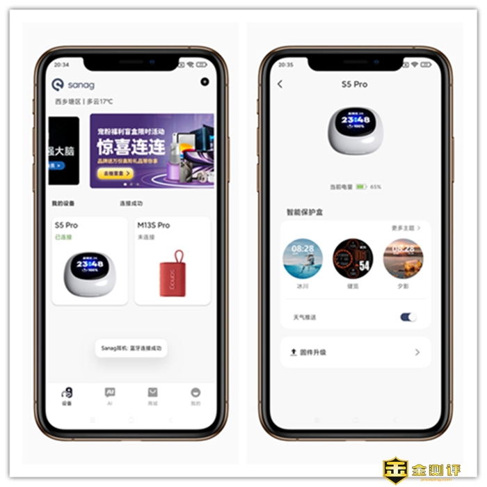 sanag塞那S5 PRO 的交互触控功能就更撼动我的心了,一个耳机而已,耳机仓不但支持音乐控制,还可以知晓天气,还有海量壁纸可更换,秒表、计算器、屏幕的亮度、熄屏时间、密码设置等都可以直接在上面操作,具备了很多手机的功能,不带手机也能十分方便,好玩而有趣,真是让人大开眼界。